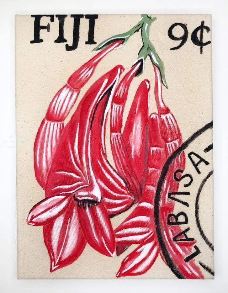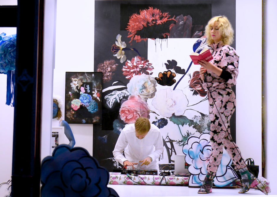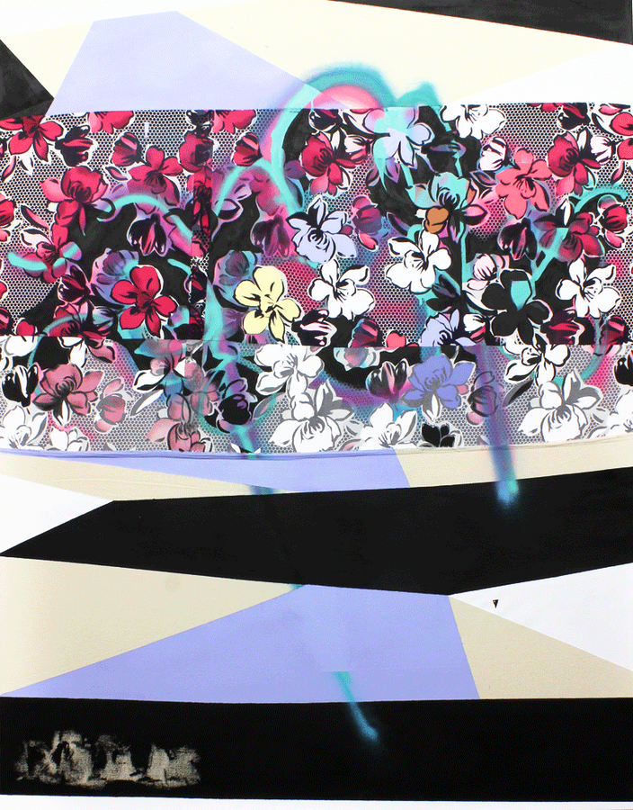 The PPI-series are based on thematic research turning mostly floral fabrics from travels/residencies into collage-like canvases